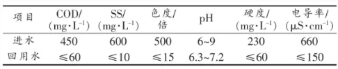 RO出水COD、色度和SS分別為15mg/L、3倍和1mg/L,系統(tǒng)去除率分別達96.7%、96.3%和99.8%。各指標都低于設(shè)計回用標準,回用率53%